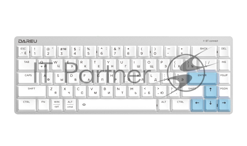 Клавиатура беспроводная Dareu EK868 White-Blue (белый/голубой), подключение: проводное+Bluetooth, свитчи: ультратонкие Kailh-Dareu Red (linear)