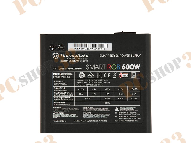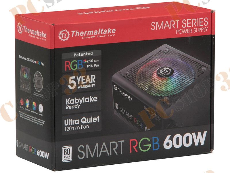 Блок питания 600Вт Thermaltake Smart RGB 600W SPR-0600NHSAW ATX12V V2.3 (20/24+4/8+6/8pin, вентилятор d120мм) + кабель питания EURO (1.5м)