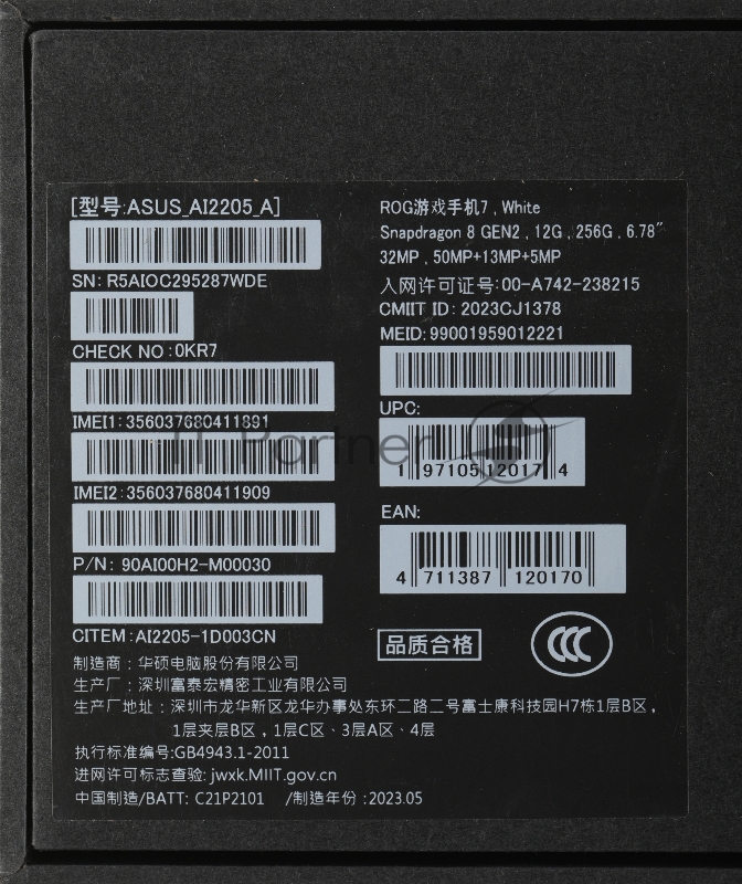 Смартфон Asus AI2205 ROG Phone 7 5G 256Gb 12Gb белый моноблок 3G 4G 2Sim 6.78 1080x2448 Android 13 50Mpix 802.11 a/b/g/n/ac/ax/be NFC GPS GSM900/1800 GSM1900 TouchSc Protect