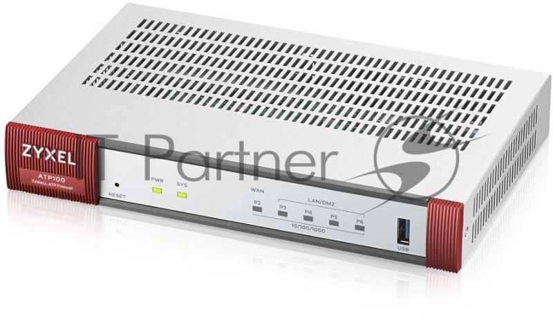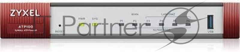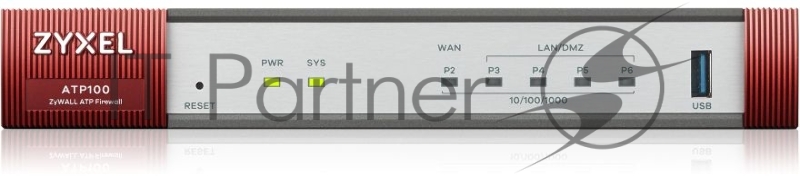 Межсетевой экран Zyxel ATP100 Firewall, 1xWAN GE, 1xOPT GE (LAN/WAN), 3xLAN/DMZ GE, 1xUSB3.0, AP Controller (8/24), NebulaFlex Pro, 1 Year Gold Subscription (AS, AV, CF, IDP / DPI, sandbox, SecuReporter, secure Wi-Fi, 24 access points) !AS+CF tempora
