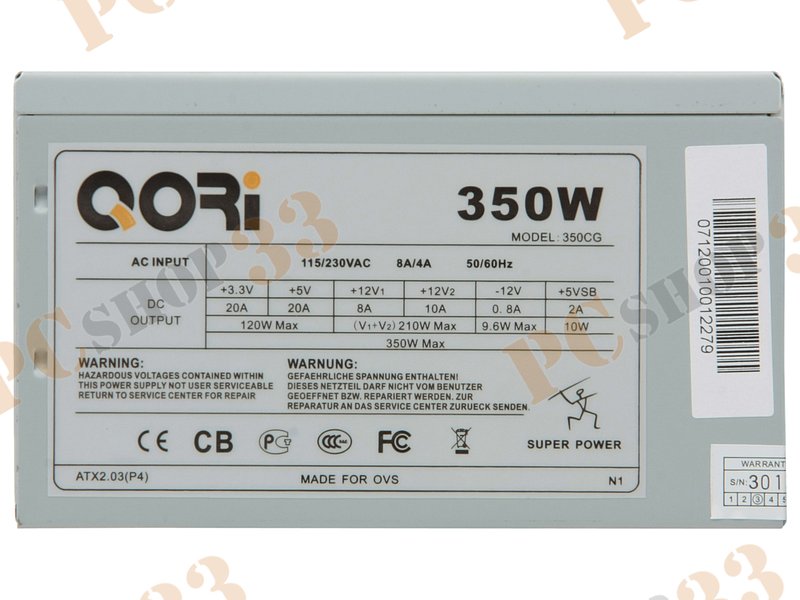 Блок питания 350Вт Codegen QORi 350CG ATX12V V2.03 (20/24+4pin, вентилятор d80мм)