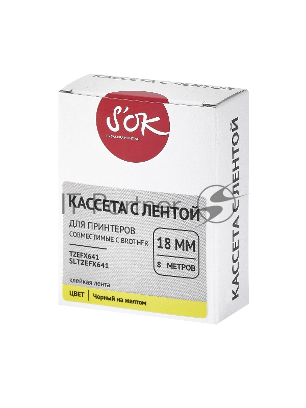 Кассета с лентой SOK by Sakura Printing TZEFX641 для Brother, черный на желтом, 18мм/8м , наклейка