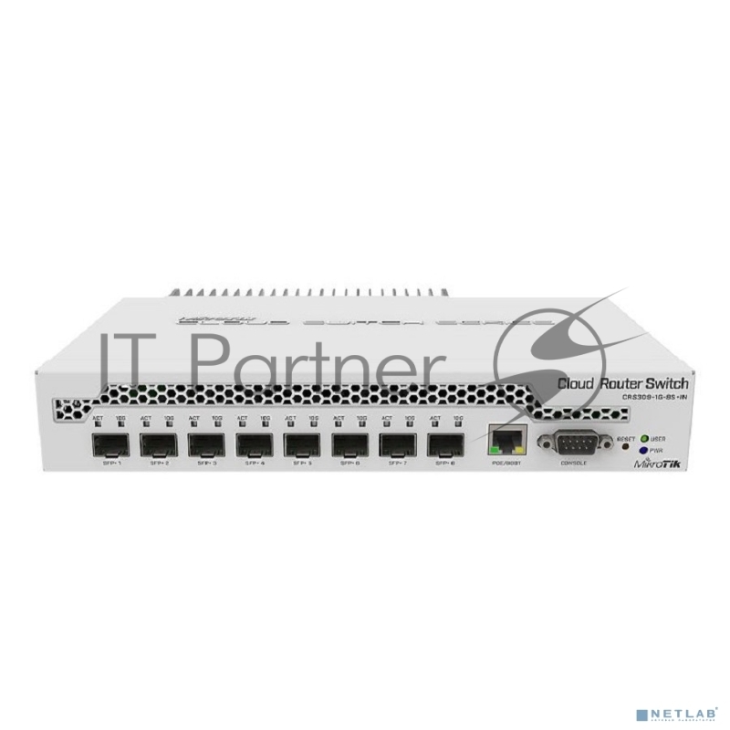 Коммутатор MikroTik CRS309-1G-8S+IN 8 SFP+, dual-core 800MHz CPU, 512MB RAM, POE, RS232 serial port