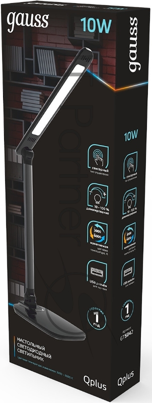 Светильник Gauss Qplus GTL504 (GT5042) настольный LED черный 10Вт