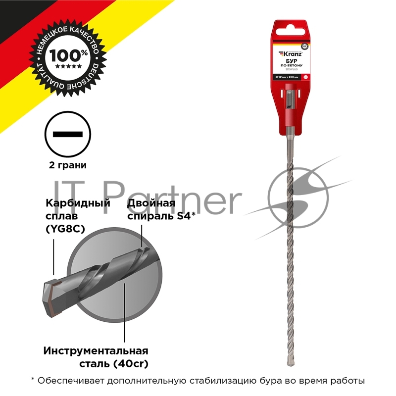 Бур по бетону 12x260x200 мм SDS PLUS Kranz