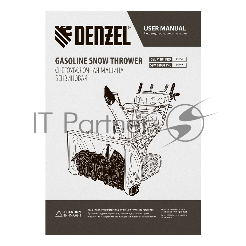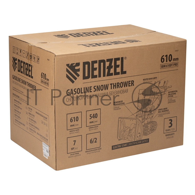 Бензиновая снегоуборочная машина SBM 610DT PRO, 212cc, гусеницы, эл.старт, блок. дифф.// Denzel