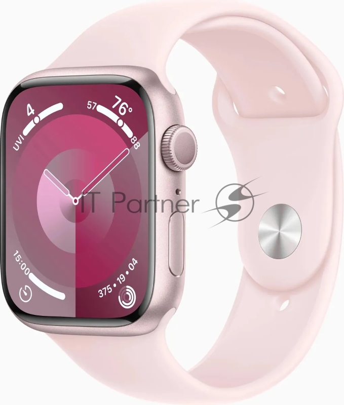 Смарт-часы Apple Watch Series 9 A2980 45мм OLED корп.розовый Sport Band рем.светло-розовый разм.брасл.:S/M (MR9G3LL/A)