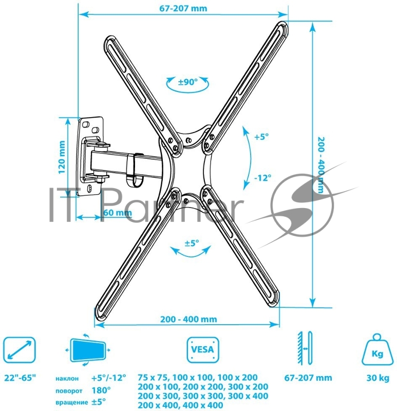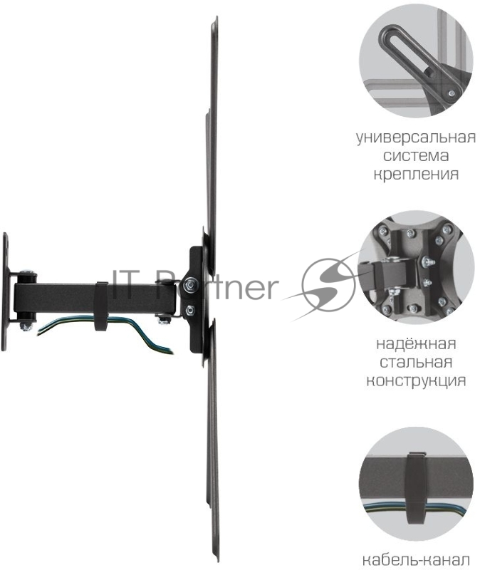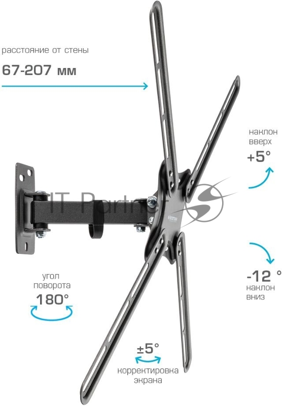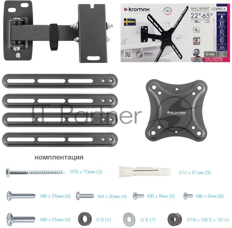 Кронштейн для телевизора Kromax CORBEL-6 черный 22-65 макс.30кг настенный поворот и наклон