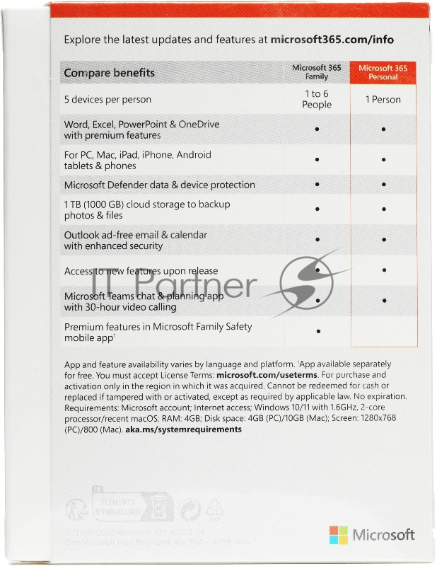 Офисное приложение Microsoft 365 Personal Subscr 1YR Medialess P8 (QQ2-01399)