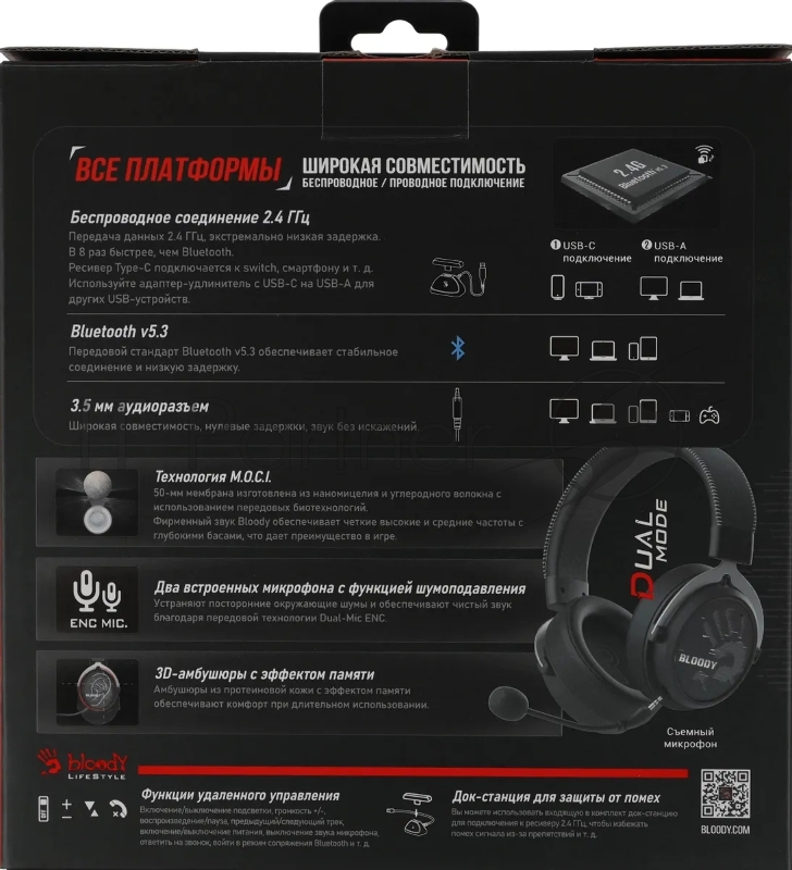 Наушники с микрофоном A4Tech Bloody MR590 Sports черный 1.5м мониторные BT/Radio/3.5mm оголовье (MR590 + WIRED/SPORT BLACK)