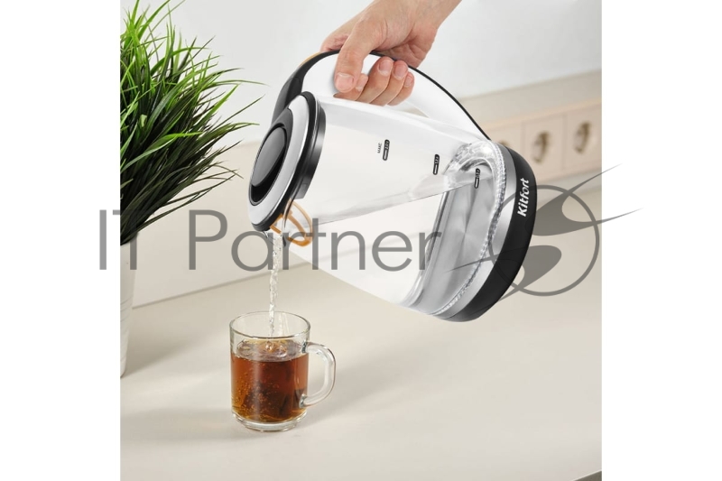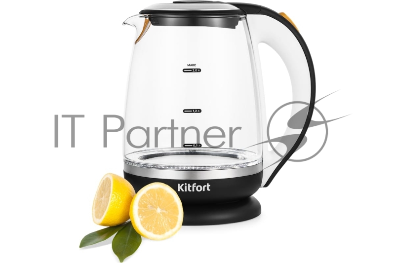 Чайник электрический Kitfort КТ-6199 2л. 2200Вт черный/белый (корпус: пластик/стекло)