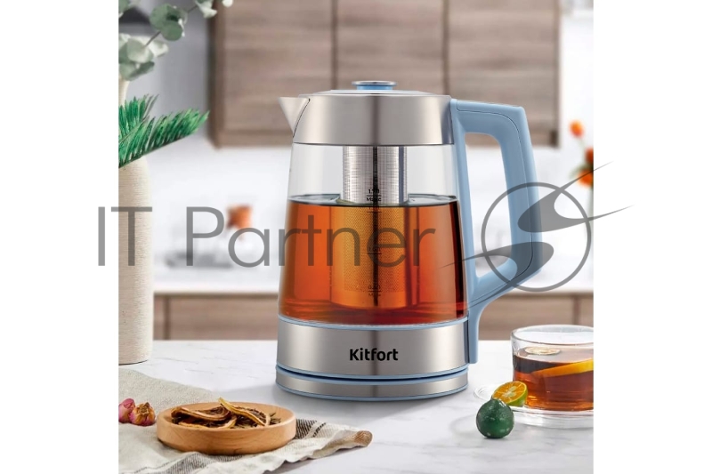 Чайник электрический Kitfort КТ-6617 1.7л. 2200Вт голубой/нержавеющая сталь (корпус: пластик/стекло)
