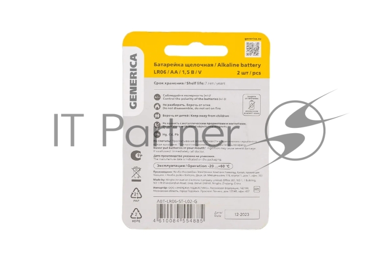 Батарейка щелочная Alkaline LR06/AA (2шт/блистер) GENERICA
