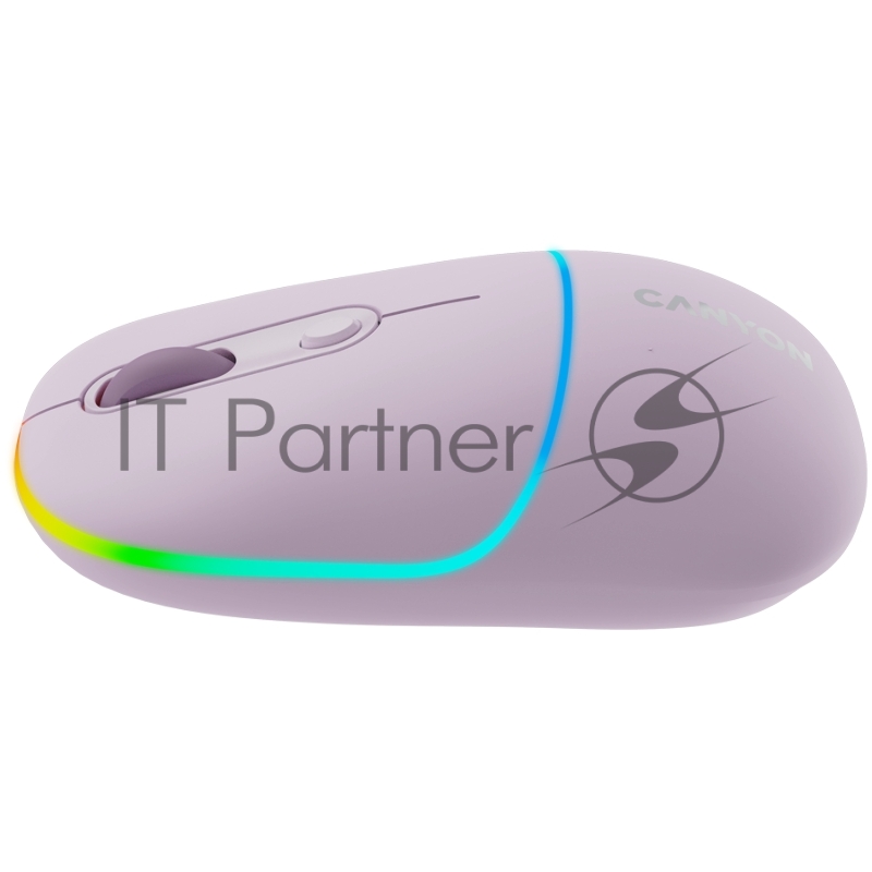 Мышь CANYON MW-22, 2 in 1 Wireless optical mouse with 4 buttons,Silent switch for right/left keys,DPI 800/1200/1600, 2 mode(BT/ 2.4GHz), 650mAh Li-poly battery,RGB backlight,Pearl rose, cable length 0.8m, 110*62*34.2mm, 0.085kg
