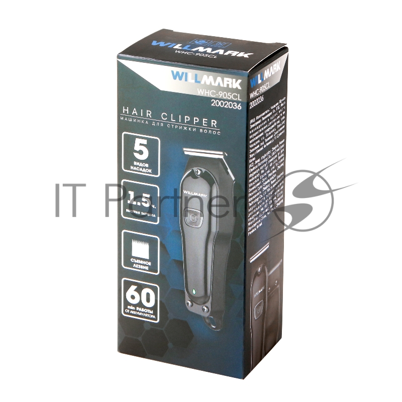 Машинка для стрижки WILLMARK WHC-905CL (аккумуляторная,5 насадок,60мин.работы,зарядка 1,5ч, нерж.ст)
