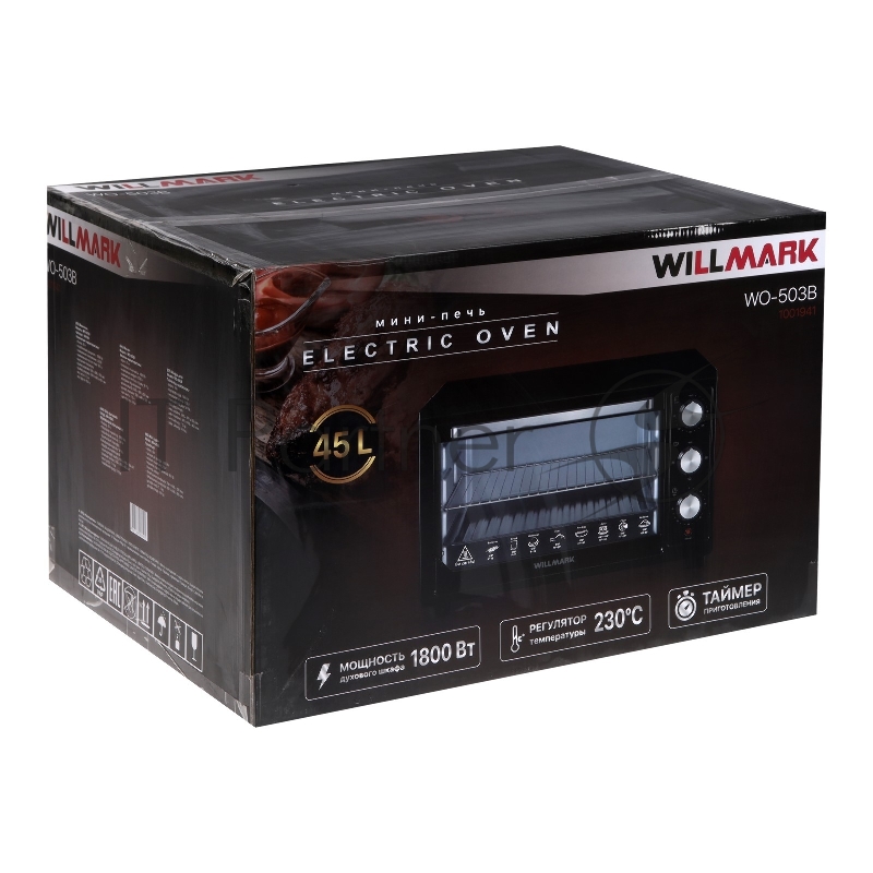Мини-печь WILLMARK WO-503B (45 литров, таймер, термостат,230С, 1800Вт, чёрный)