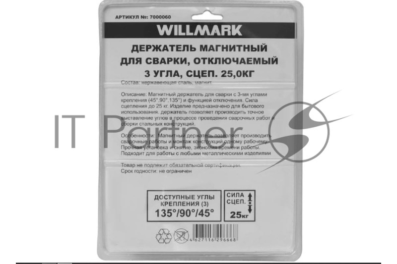 Держатель для сварки магнитный отключаемый WILLMARK (3 угла: 45,90, 135, сила сцеп. 25кг)