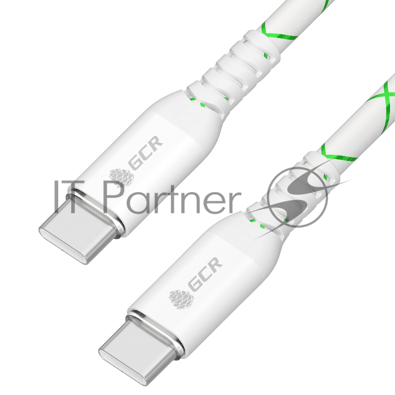Кабель GCR 0.5m Type C-C POWER DELIVERY 18 W, бело-зеленый, AL case белый, белый ПВХ