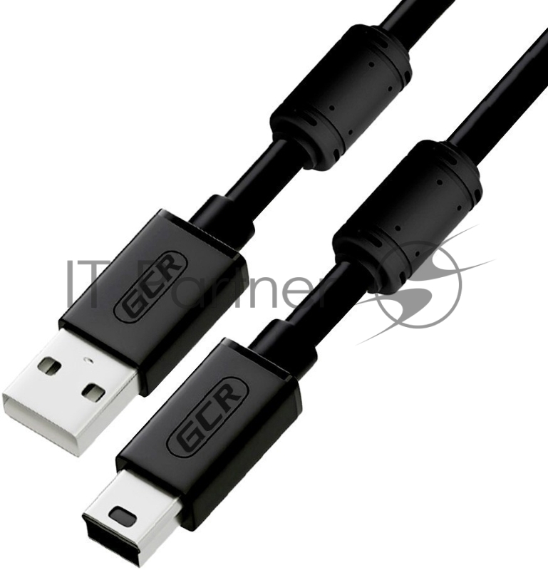 Кабель GCR 1.5m USB 2.0, AM/mini 5P, черный, ферритовые кольца, 28/28 AWG, экран, армированный, морозостойкий, GCR-51177