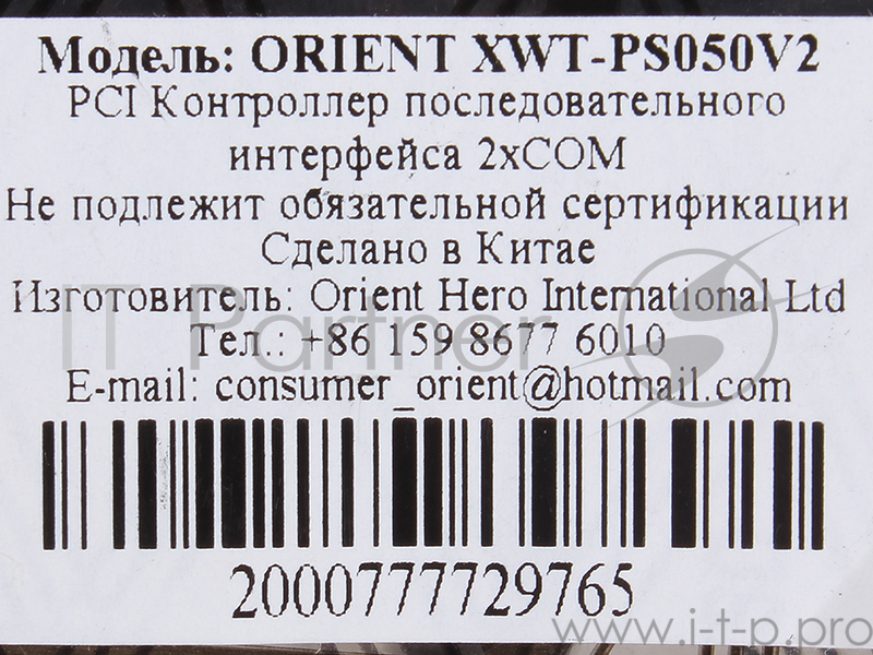Контроллер COM (2 внешн. 9pin) ORIENT XWT-PS050V2 (PCI)