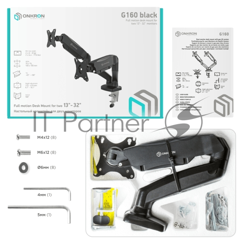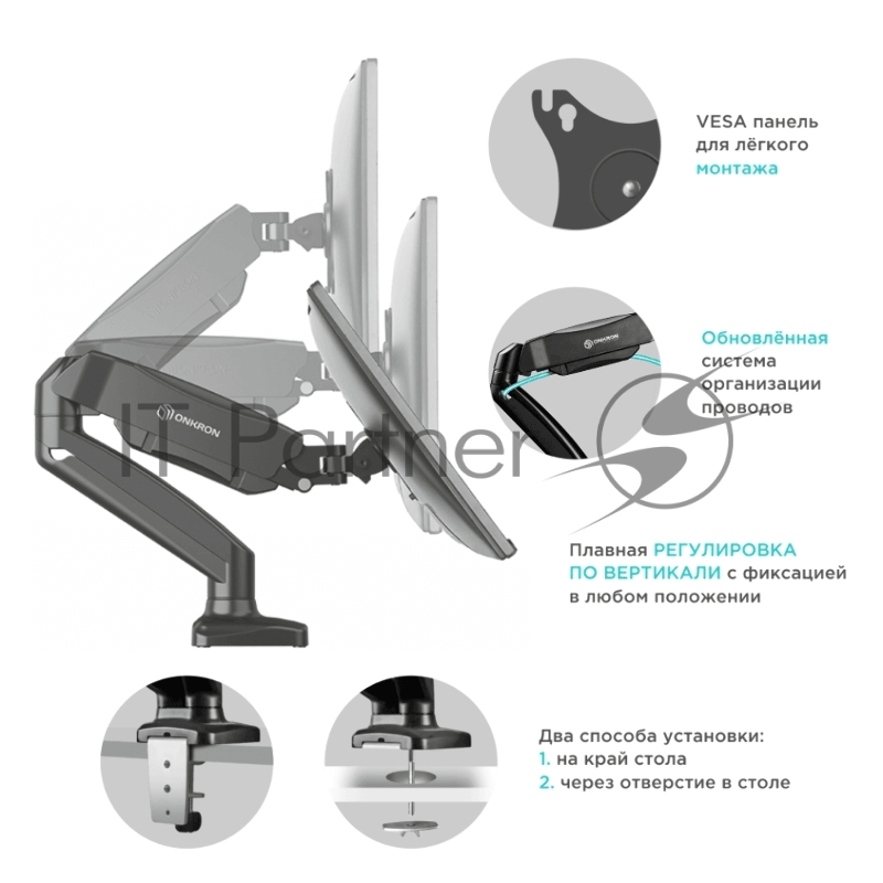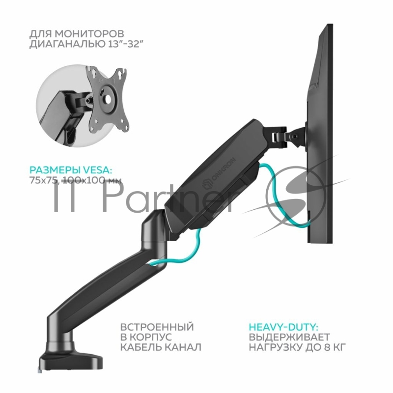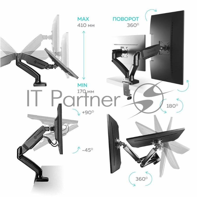 Кронштейн ONKRON G160 для монитора 13-32 настольный, черный