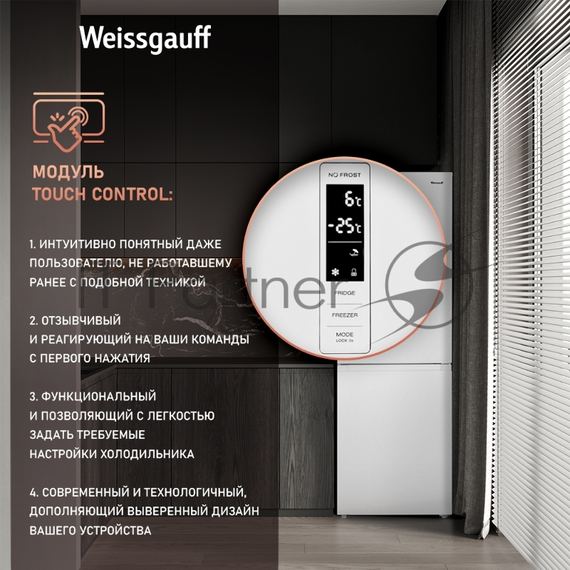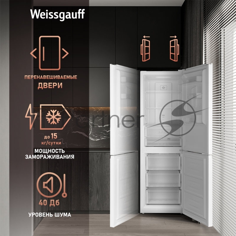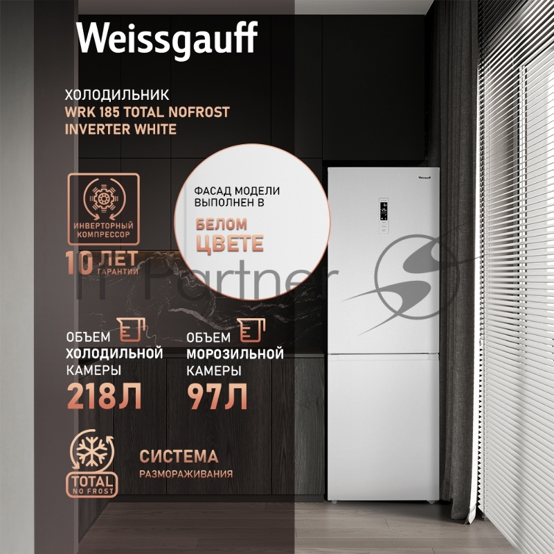 Холодильник Weissgauff WRK 185 Total NoFrost Inverter White Glass