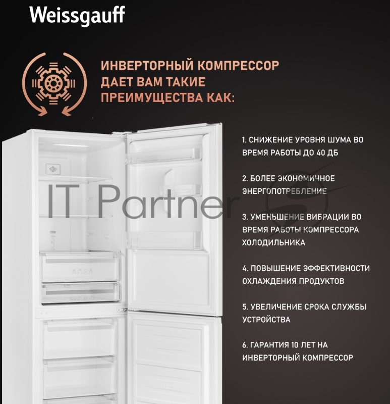 Купить холодильник Weissgauff WRK 185 Total NoFrost Inverter White Glass в Коврове. Заказать на сайте. Доставка из "Ваш Компьютер". Ковров пр-т Ленина 20. Доставка
