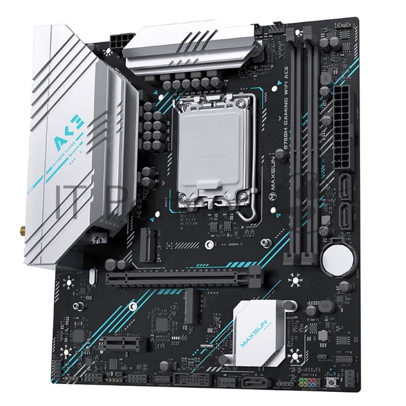 Материнская плата Maxsun MS-B760M GAMING WIFI ACE LGA1700 B760 2*DDR5 1*PCIEx16/ 1*PCIEx1/ 2*M.2 Front2*USB3.2 Gen1/ 2*USB2.0 Rear4*USB3.2 Gen1/ 2*USB2.0 3*SATA3 1G VGA+HDMI M-ATX RTL