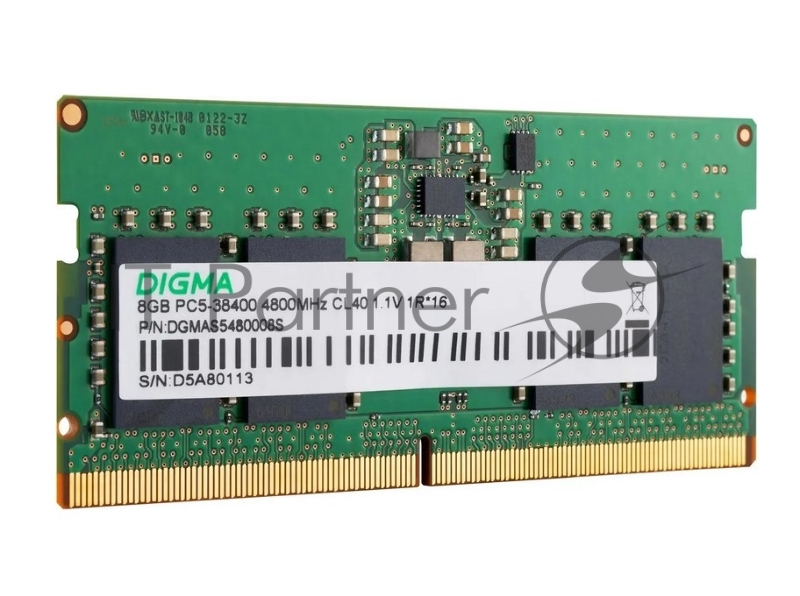 Память DDR5 8GB 4800MHz Digma DGMAS5480008S RTL PC5-38400 CL40 SO-DIMM 262-pin 1.1В single rank Ret