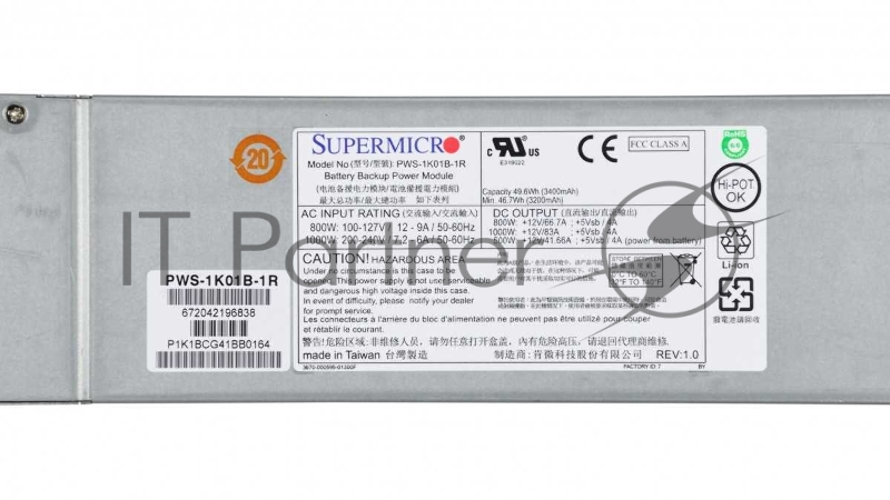 Блок питания SuperMicro 1U 1000W Redundant PS w/ 500W Battery, BBP2 76x40x360mm,RoHS