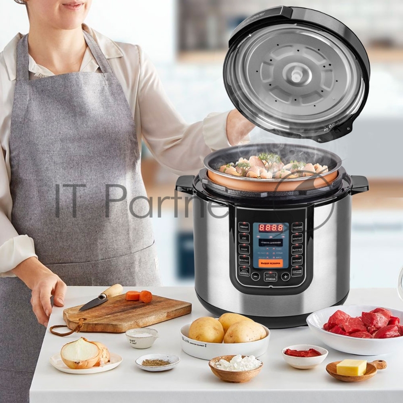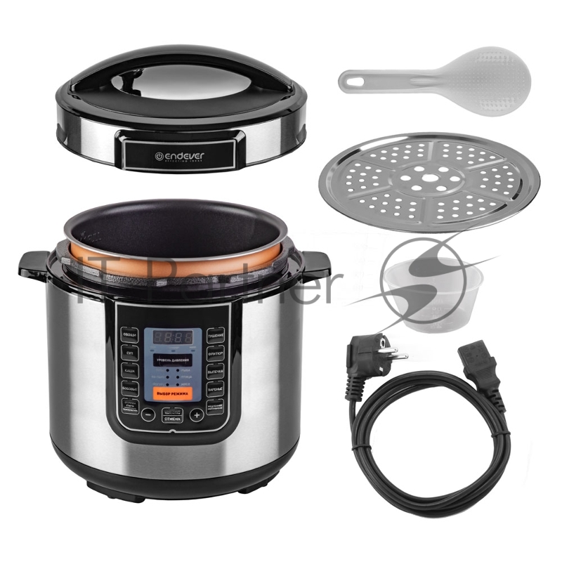 Скороварка-мультиварка электрическая Endever Vita-132, черный/стальной, мощность 1200 Вт, емкость 6л, 16 авторежимов работы, книга рецептов, 2 шт/уп.