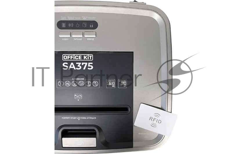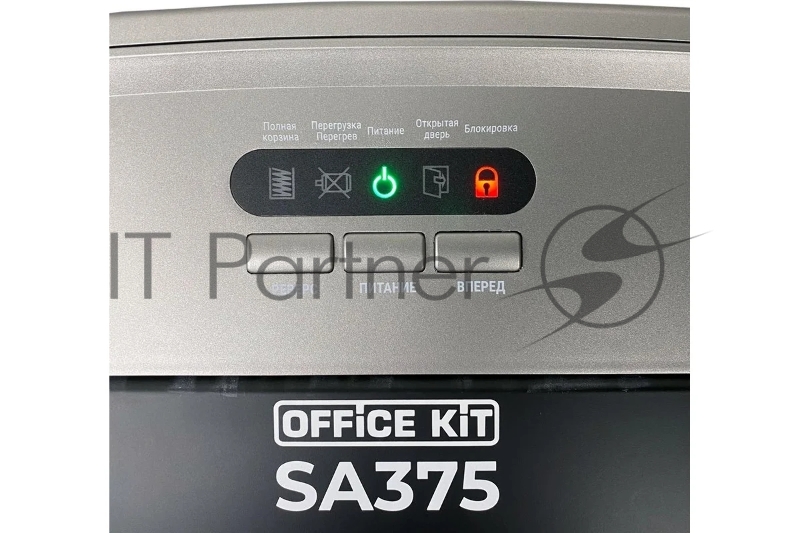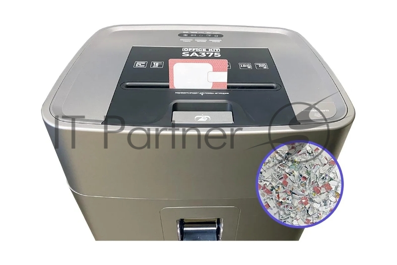 Шредер Office Kit SA375 серый/черный с автоподачей (секр.P-4) фрагменты 375лист. 42лтр. скрепки скобы пл.карты CD