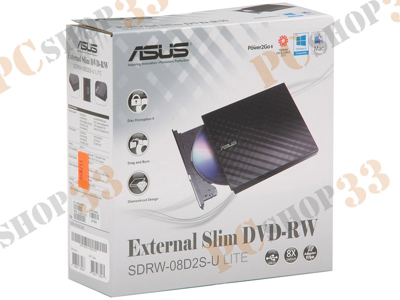Привод DVDRW 8x8x8xDVD/24x16x24xCD ASUS SDRW-08D2S-U LITE, внешн., черный (USB2.0)