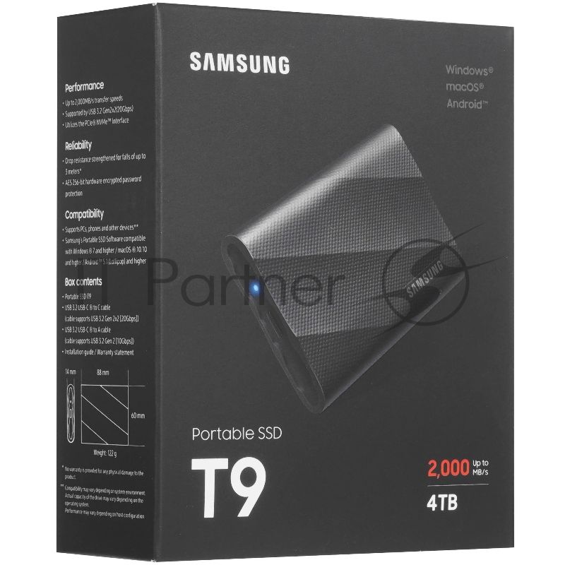 Твердотельный диск 4TB Samsung T9 MU-PG4T0B/WW, 3D NAND TLC, USB 3.2 Type-C [R/W - 2000/2000 MB/s] Black/EU