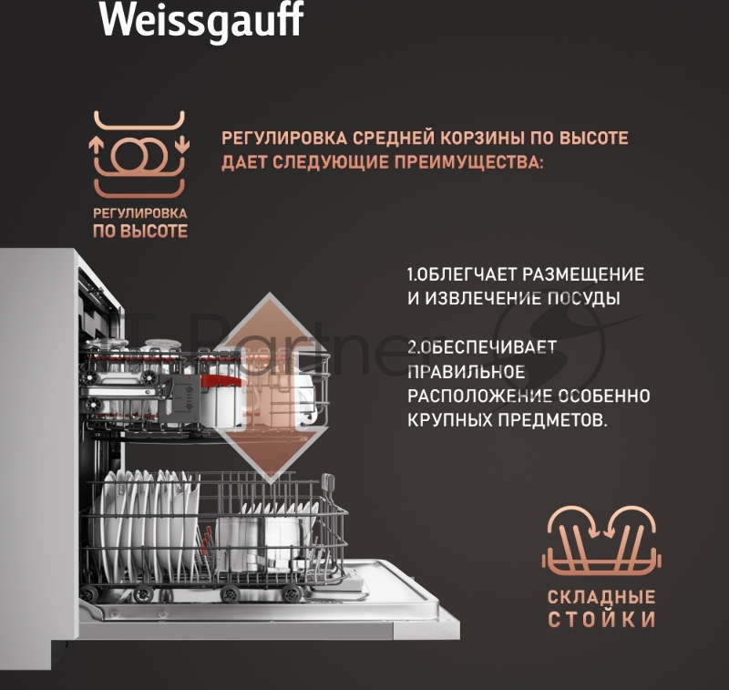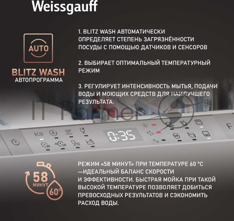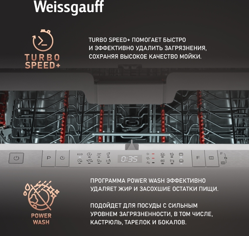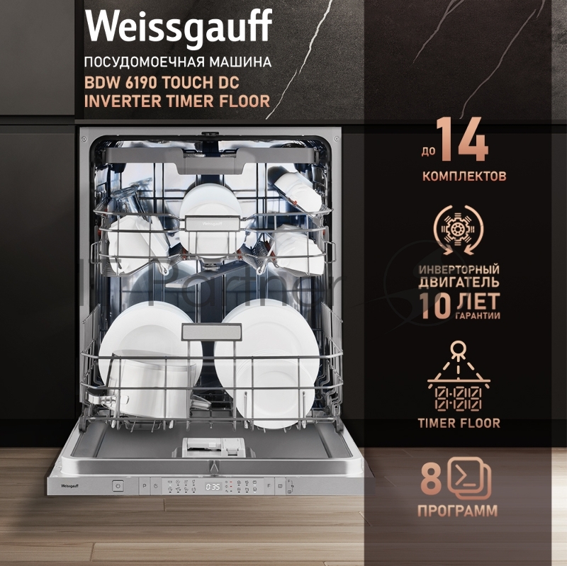 Встраиваемая посудомоечная машина Weissgauff BDW 6190 Touch DC Inverter Timer Floor