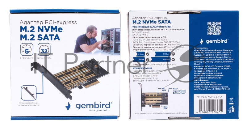 Адаптер для двух SSD M.2 (NVMe+SATA) в разъем PCI-e Gembird MF-PCIE-NVME-SATA, коробка