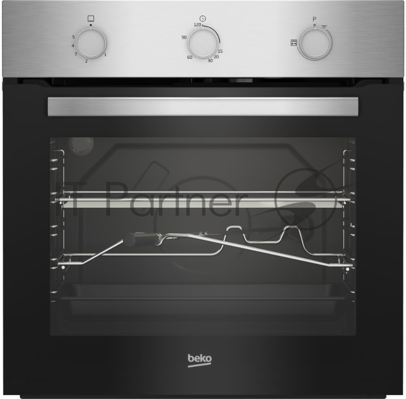 Газовый духовой шкаф BEKO BBIGT21100X с откидным электрическим грилем автоматический электроподжиг поворотные переключатели металлические направляющие объем - 72л 3 стекла дверцы 1 решетка 1 противень вертел. Цвет: Нержавеющая сталь Материал панели у