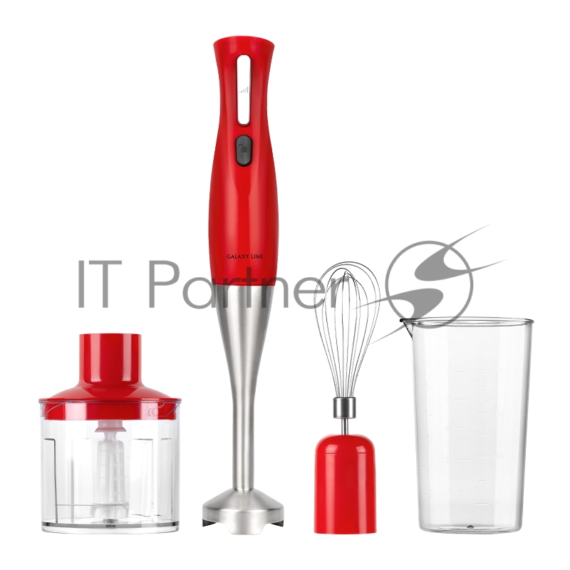Блендерный набор GALAXY LINE GL 2164, красный, погружной, 1200 Вт, насадка-венчик, насадка-измельчитель с чашей 500 мл, насадка-блендер из нержавеющей стали, мерный стакан 700 мл, книга рецептов