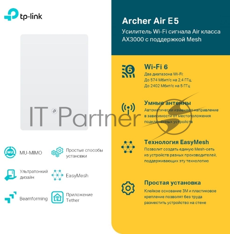 Повторитель беспроводного сигнала TP-Link Archer Air E5 AX3000 Wi-Fi белый