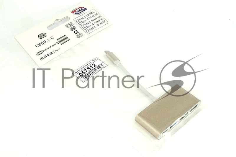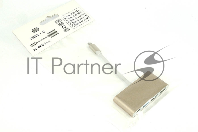 Адаптер Multiport Type-C на USB 2шт., USB 3.0, Type-С для MacBook, золотой