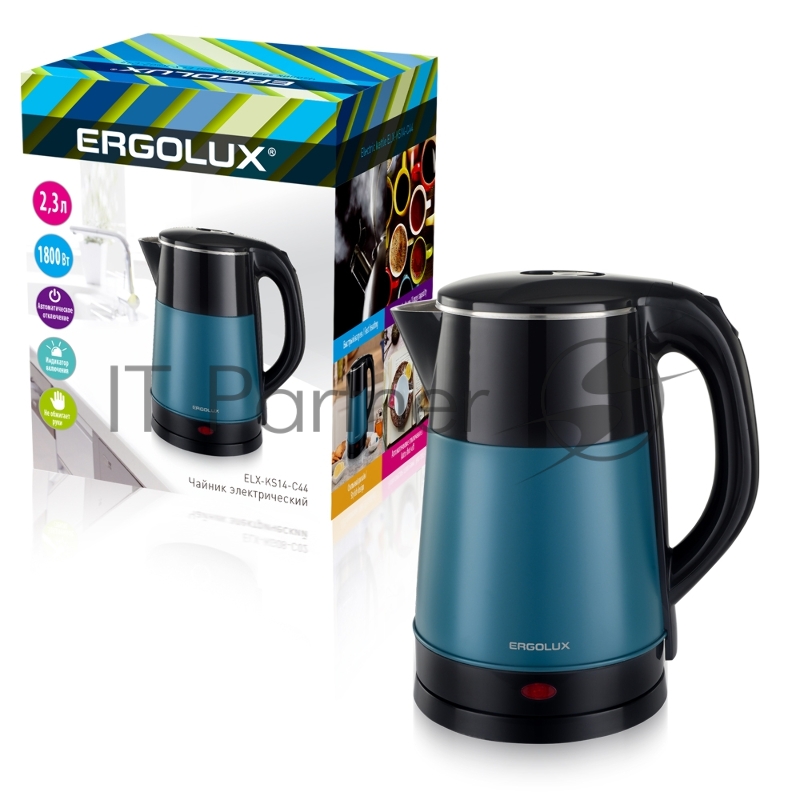Чайник электрический ELX-KS14-C44 нерж.сталь/пластик 2.3л 220-240В 1800Вт черн./зел. ERGOLUX 15332