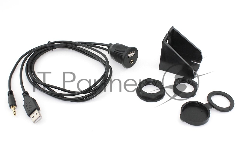 Кабель USB 2.0 двойной с мини джеком 3.5 для монтажа на корпус 1 м влагозащищённый