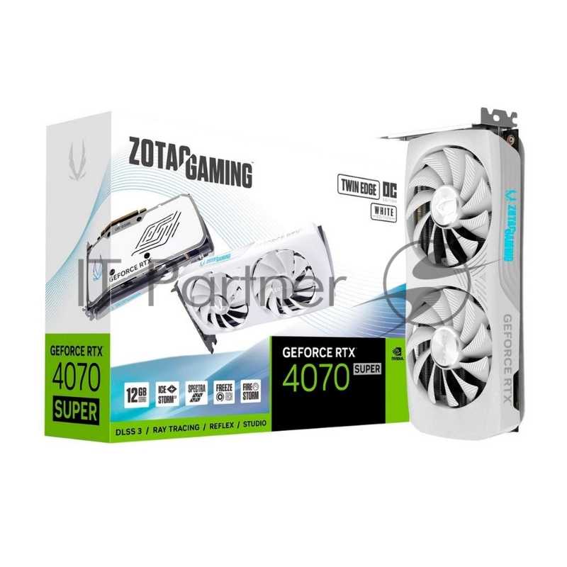 Видеокарта Zotac RTX4070 SUPER ТWIN EDGE ОС WHITE ED 12GB GDDR6X 192bit 3xDP HDMI 2FAN Medium Pack