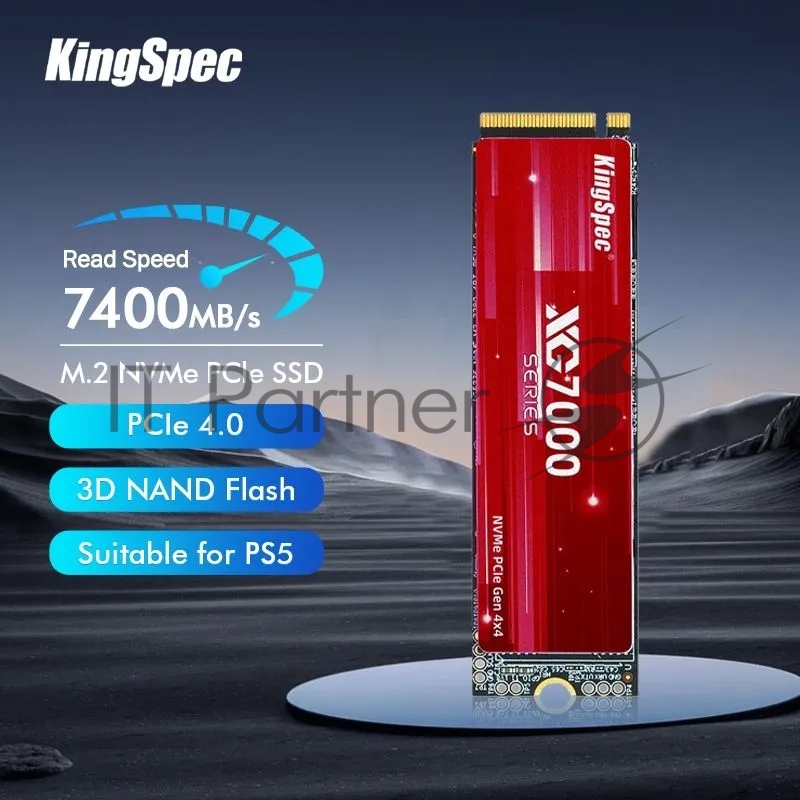 Твердотельный накопитель Kingspec SSD XG7000-512 2280, 2048GB, M.2(22x80mm), NVMe, PCIe 4.0 x4, 3D NAND, R/W 7400/6400MB/s, IOPs 700 000/600 000, TBW 1200, DWPD 0.89, with Heat Sink (3 года)