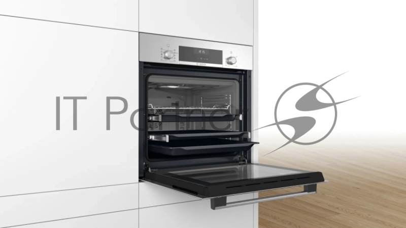 Serie 6, духовой шкаф электрический, 60 см, 66 л, нержавеющая сталь, класс энергоэффективности А, 8 режимов, LCD-дисплей, галогенное освещение, самоочистка EcoClean