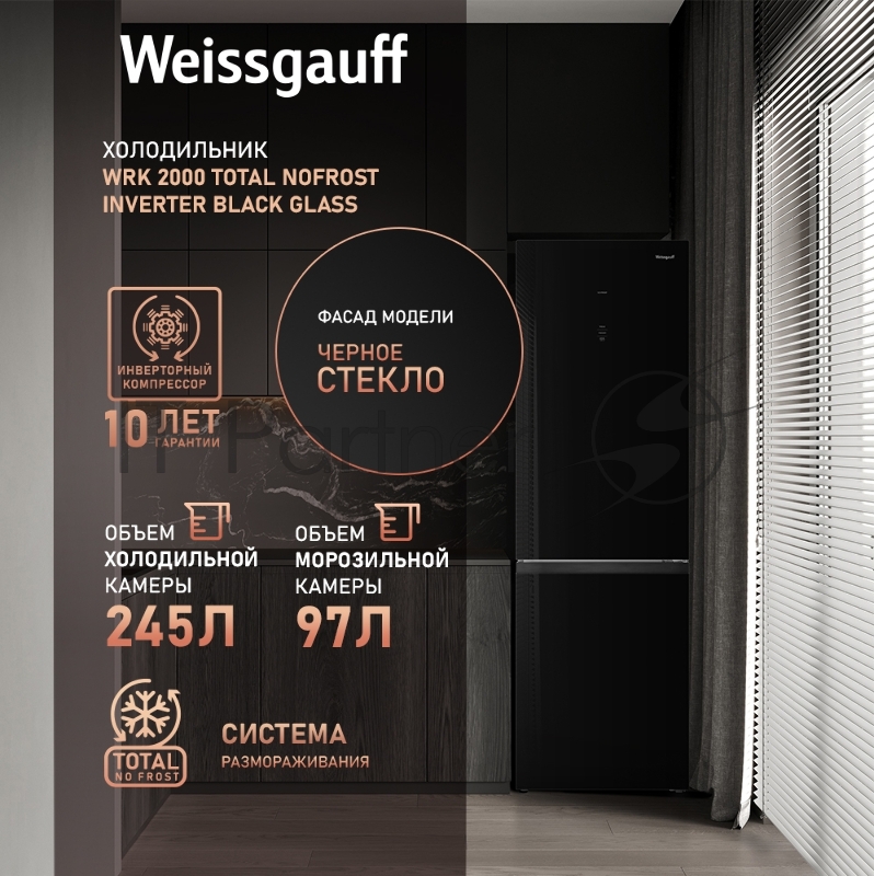 Холодильник WEISSGAUFF WRK 2000 INVERTER NO FROST BLK. GLASS