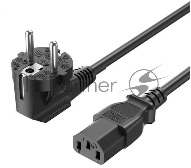Кабель питания Vention C13, угловая вилка - 1.8м. Чёрный