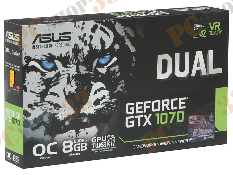 Видеокарта ASUS GeForce GTX 1070 8ГБ DUAL-GTX1070-O8G (GeForce GTX 1070, DDR5, DVI, 2xHDMI, 2xDP) (PCI-E)