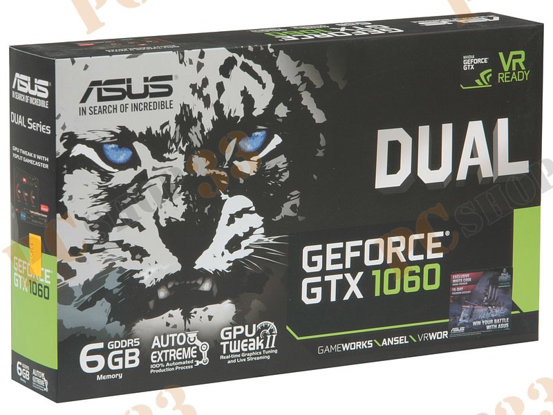 Видеокарта ASUS GeForce GTX 1060 6ГБ DUAL-GTX1060-6G (GeForce GTX 1060, DDR5, DVI, 2xHDMI, 2xDP) (PCI-E)