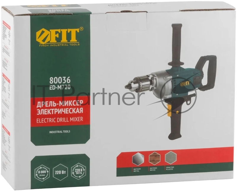 Дрель-миксер FIT ED-M720 720 Вт, 0-900 об/мин, КлП 3-16 мм, металл.корпус, рез.накл., коробка
